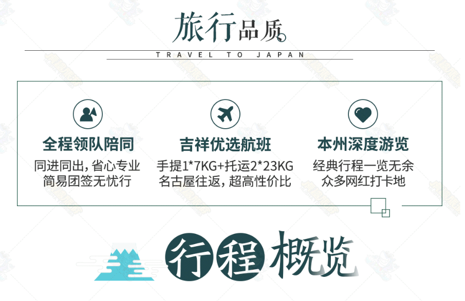 ◈贵宾根据航班时间自行前往机场,由领队带领办理出境手续,搭乘国际航班飞往日本,开始期待已久的日本之行。