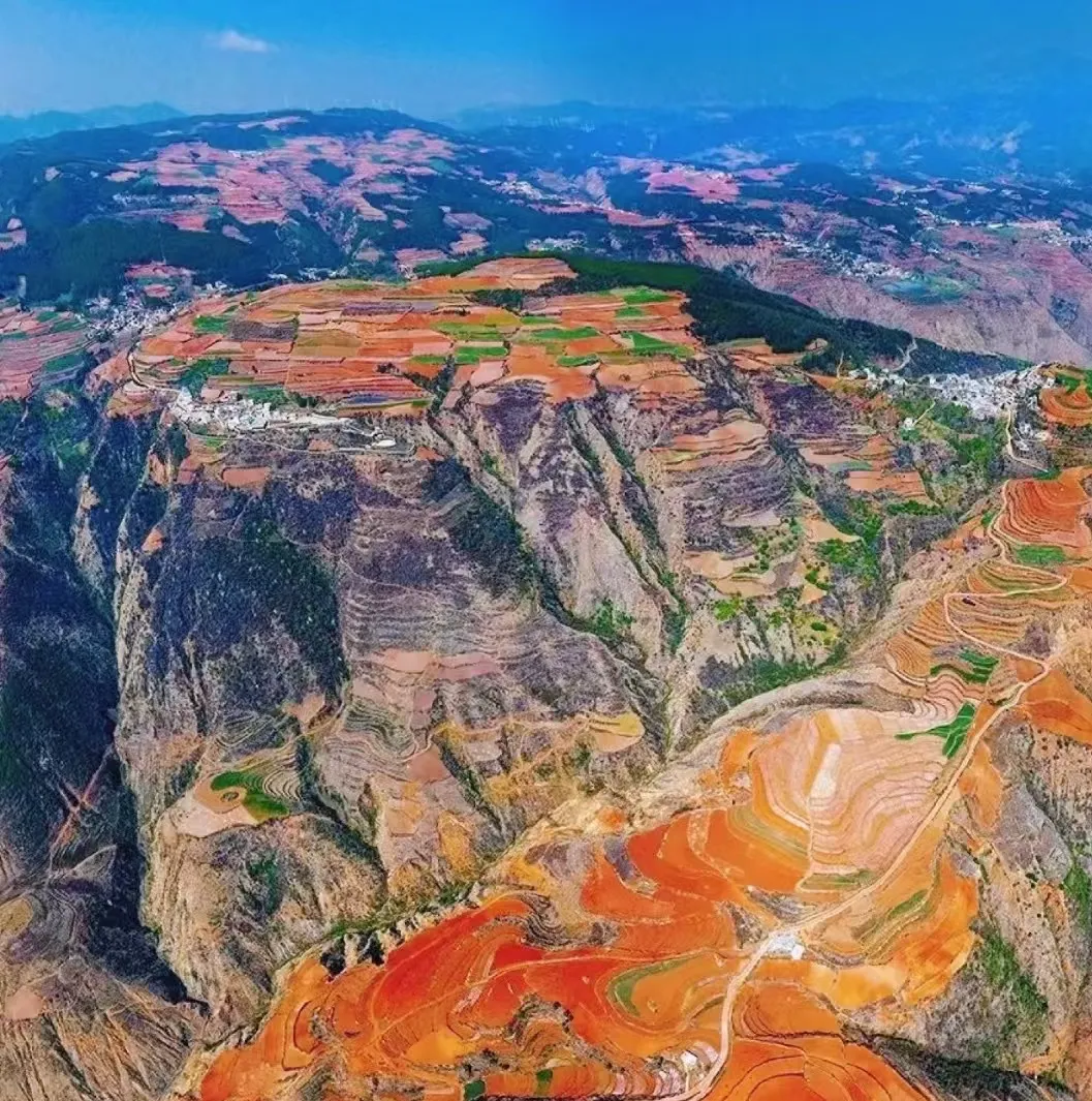 后前往有“大地调色板”之称的【东川红土地】了哦!【云南东川红土地】被专家认为是全世界除巴西里约热内卢外最有气势的红土地,而其景象比巴西红土地更为壮美。抵达后参观摄,此处大地如一块巨大的调色板真可谓是大自然的鬼斧神工。