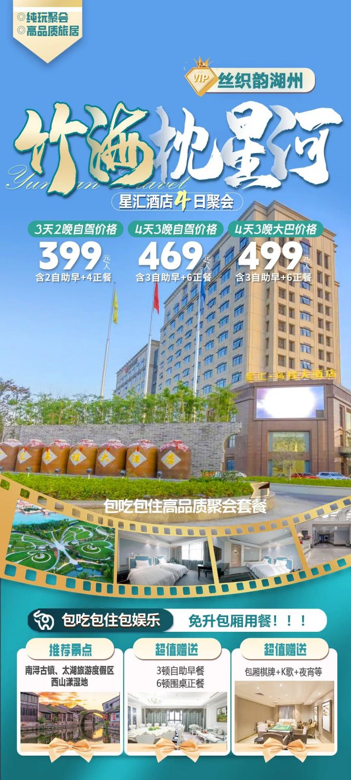 住宿:3晚湖州星汇乌程酒店(遇政务接待等不可抗力因素,则替换周边同等级酒店,报名前请知晓)