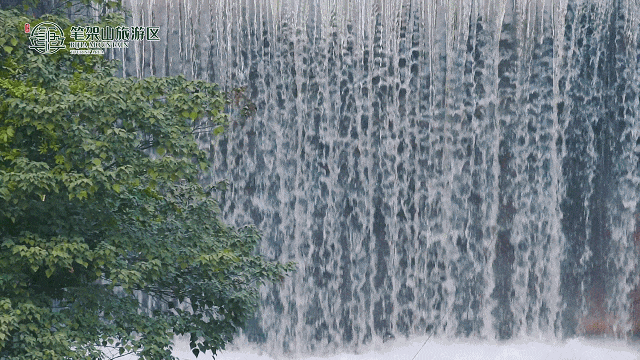 【九重飞瀑】高208米,是笔架山脉稀有的高空奇瀑,巨大的水幕如银河飘雪从山峰中飞泻层叠而下,气势磅礴,极其壮观。“香炉瀑布遥相望,回崖沓嶂凌苍苍,”瀑布两侧峻崖环绕,峰峦重叠,犹如世外桃源一般屹立于此。