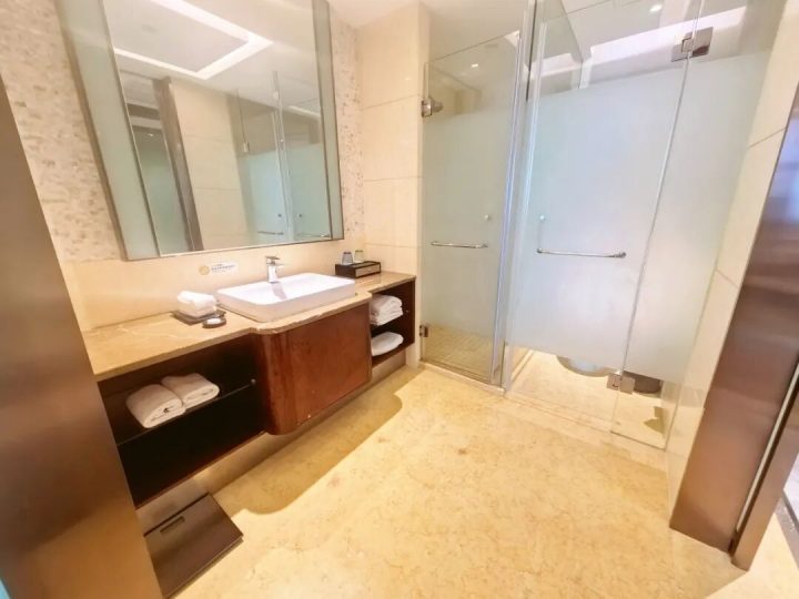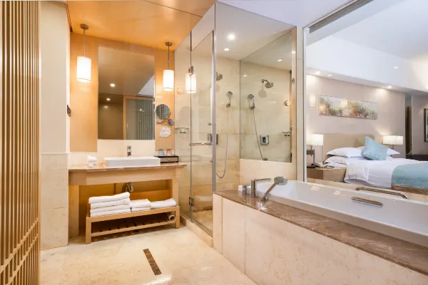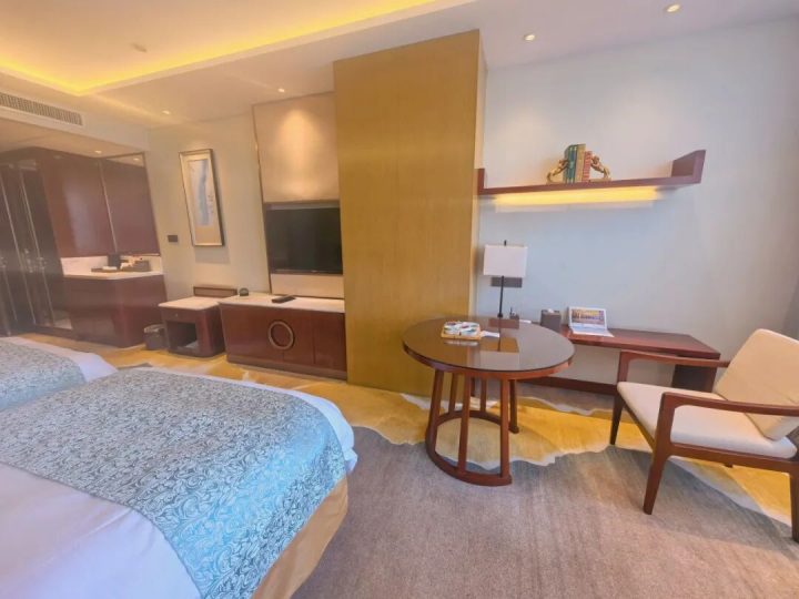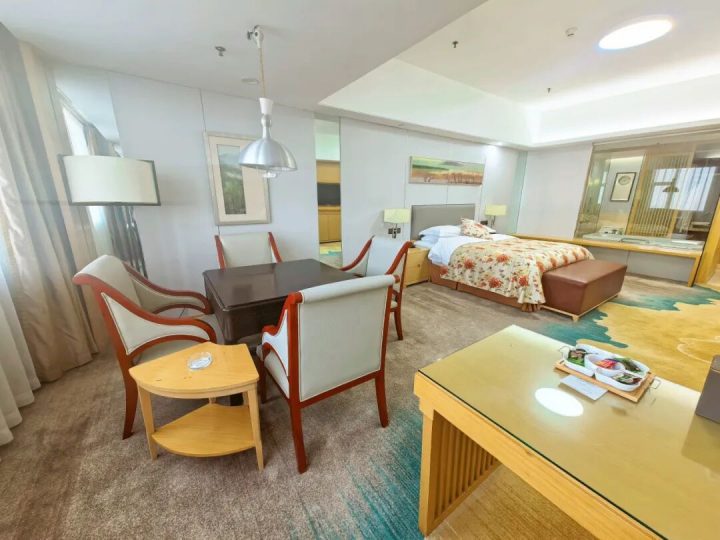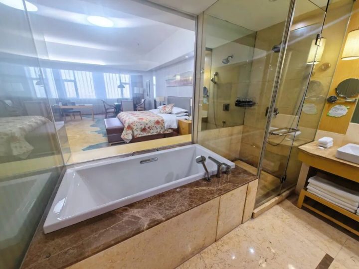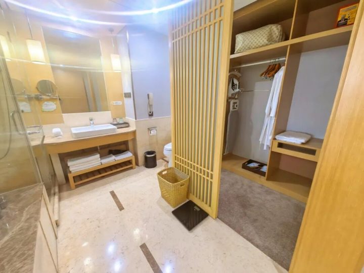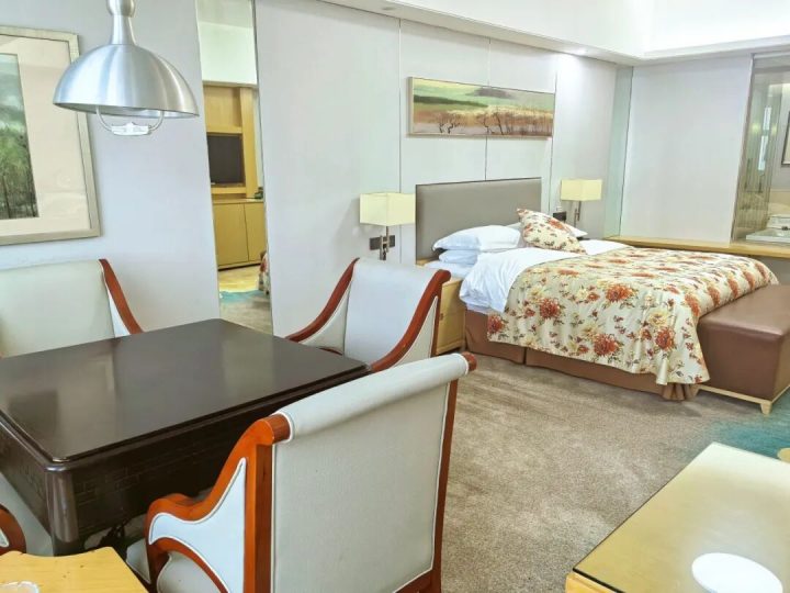 客房设计简约时尚,空间宽敞明亮,面积32-150㎡不等,配备舒适金可儿床垫。设施齐全,含空调、冰箱、淋浴等,卫生洁净,部分房型为主题房,还提供薰香助眠与欢迎小食,体验感佳。 麻将套房