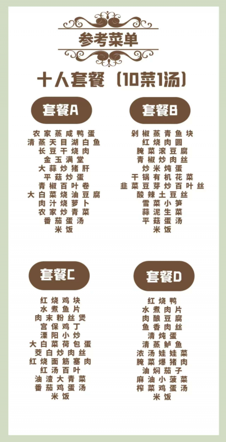 (10人/桌)参考菜单,具体以出菜为准。