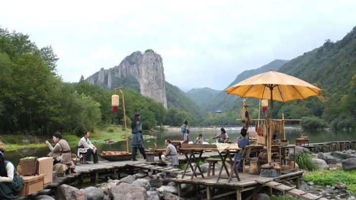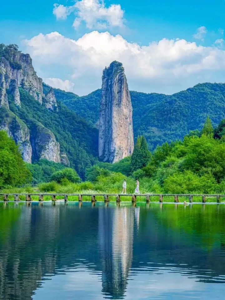 每一个到仙都的人必到朱潭山,这里有条仙堤,用卵石铺成,两边杨柳婆娑,还有一年四季自带云雾缭绕的背景,每一步都像是行走在写意的山水画里。