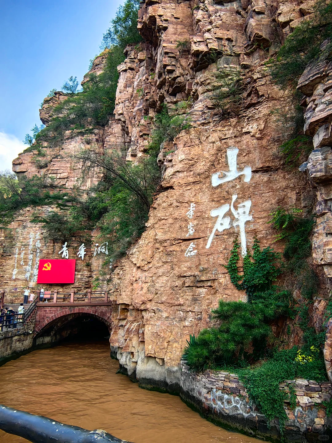 【青年洞】:现场教学:走在悬挂在巍峨雄险的太行山悬崖绝壁之上,更使你领略到“人工天河”的无尽诗意,欣赏大自然的绝色风光。感受修建红旗渠时艰苦奋斗的民族精神。