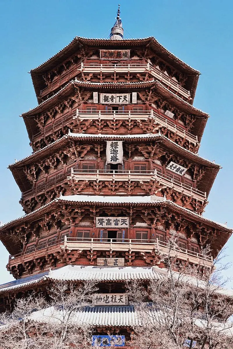 ◎接站后乘车前往佛宫寺释迦塔——又称【应县木塔】,是世界上现存最高大、最古老纯木结构楼阁式建筑,与意大利比萨斜塔、巴黎埃菲尔铁塔并称“世界三大奇塔”