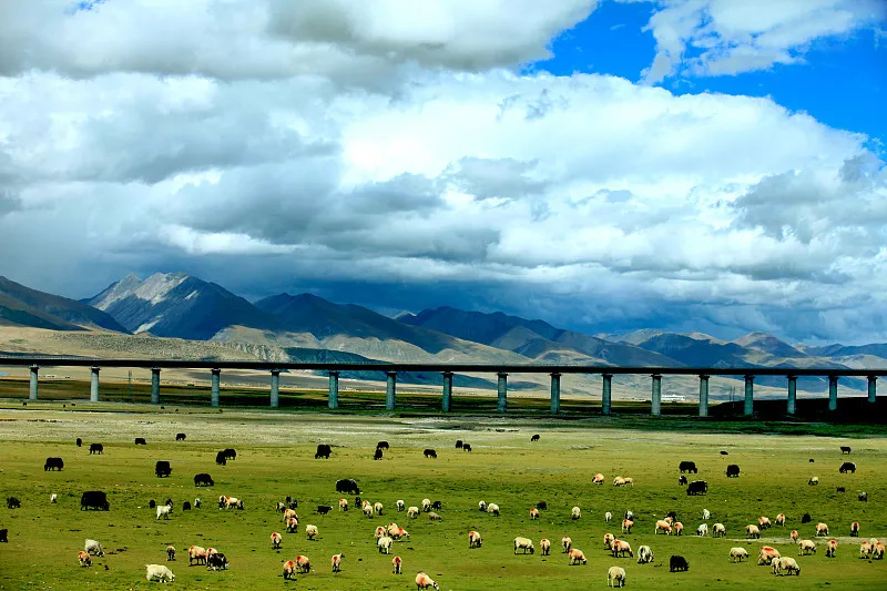 在火车上欣赏铁路沿途观自然风光,傍晚抵达西宁(换乘高原列车),列车开始行驶上青藏铁路。
