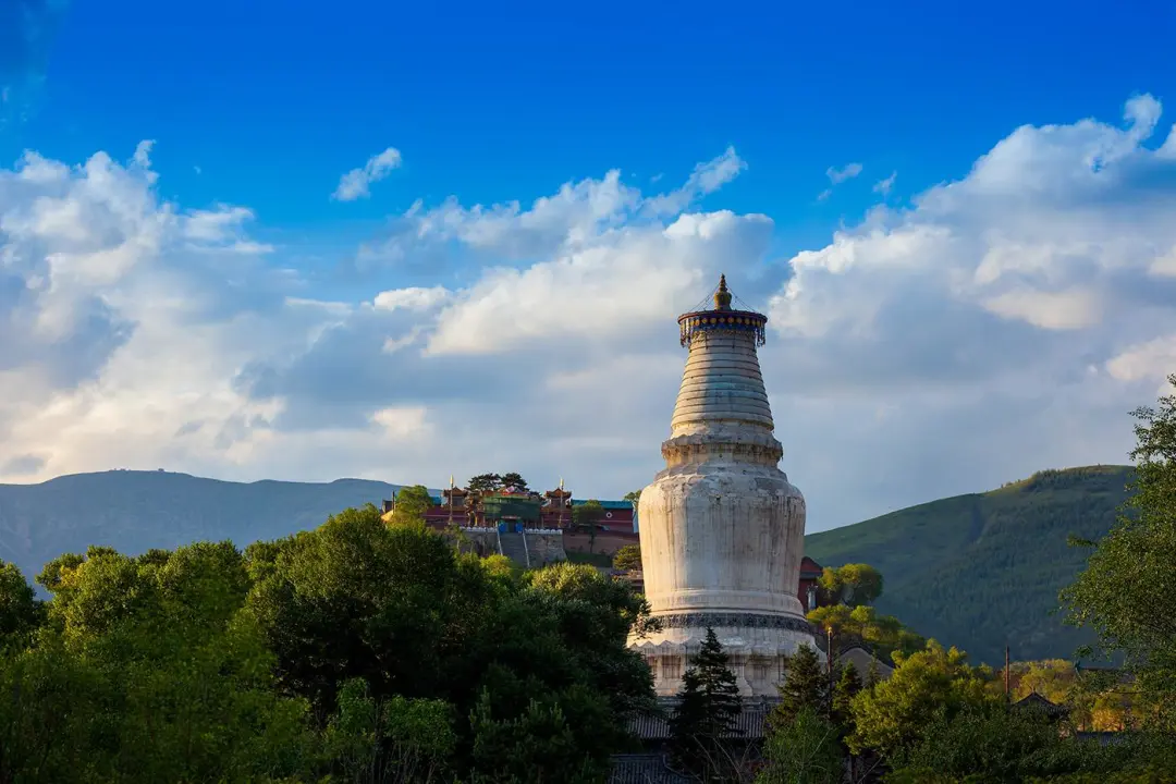 外观五台山标志性建筑大白塔,塔高56.4米,通体洁白,被誉为“清凉第一圣境”。