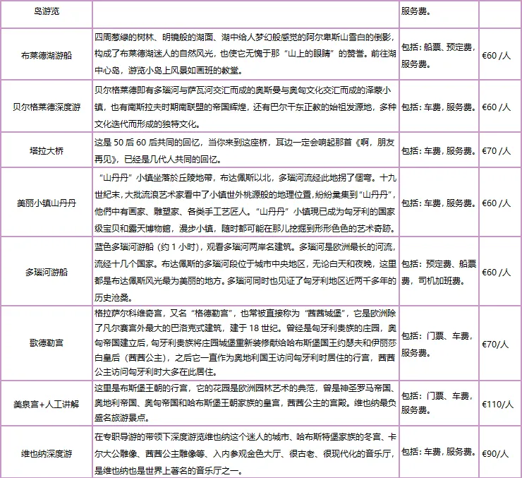 ● 行程中未提到的其它费用:如特殊门票、游船(轮)、缆车、地铁票等费用;