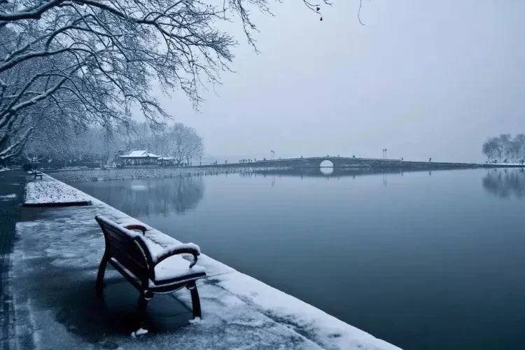 每当瑞雪初霁,站在宝石山上向南眺望,西湖银装素裹,白堤横亘雪柳霜桃。伫立桥头,放眼四望,远山近水,尽收眼底,给人以生机勃勃的强烈属深刻的印象。