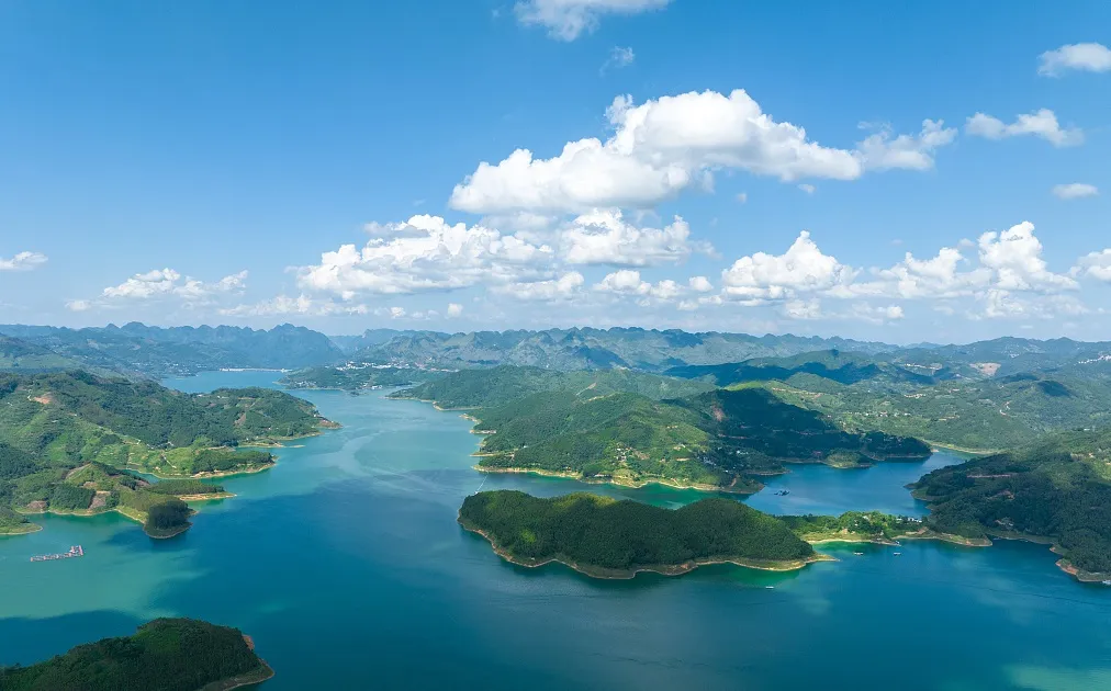早餐后,乘车前往游览贵州高原第一大湖---【万峰湖】(游览时间约1.5小时,不含游船票80元/人),万峰湖是国家重点水电工程--天生桥高坝电站建成蓄水后形成的人工湖,烟波浩淼,湖光潋滟。湖内上千座山峰构成上千个全岛或半岛,景色十分迷人是全国五大淡水湖之一。万峰湖因湖四周万峰环绕,故得名万峰湖,蓄水102亿立方米,水面达816平方公里,迂回环绕在黔、桂、滇三省(区)之间,沿岸民族山寨,独特的民居,诱人的风情,还有那少数民族姑娘们的服饰、头饰以及那撩人的情歌,都值得您到此一游。