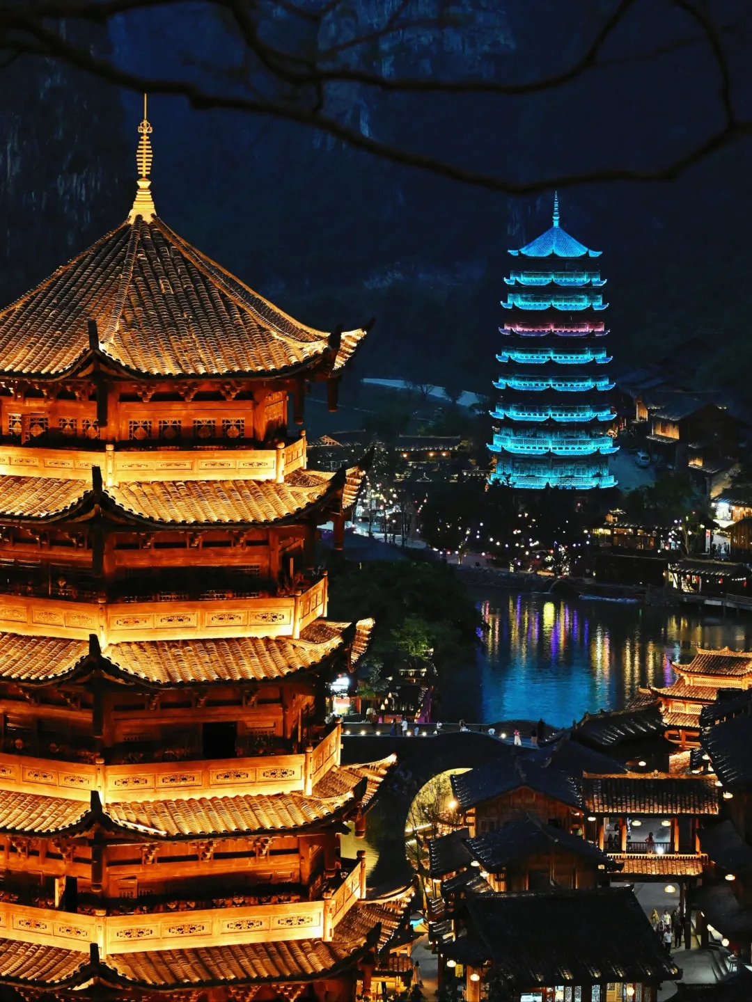 贵州夜景天花板,还能观看篝火晚会、打铁花等特色表演,感受浓厚的民族氛围。