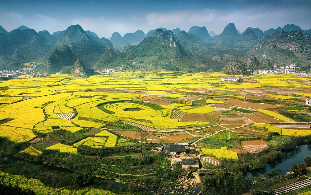 之后游览【万峰林】(游览时间约2小时,不含电瓶车50元/人),万峰林以气势宏大造型美峰岩奇特的典型喀斯特朋盆谷峰林地貌而著称。西峰林的特点是呈现高原喀斯特山峰阵型式,山峰连延,宛若兵阵。坝子西侧,可看到一片姿态万千的峰林,峰与峰或连或断,参差错落,峻秀挺拔,令人赏心悦目。纳灰河旁的【八卦田】错落有致,四季变换景色美不胜收;这里也是摄影发烧友的天堂。登高远望,青灰色的秀峰似林,黄绿相间的田野成片,【纳灰村】村庄坐落其中,小河弯曲延伸,宛如一幅瑰丽的山水画卷。