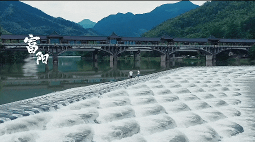 富春江如一条碧绿的绸带,轻盈地穿过城市