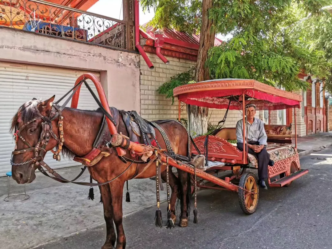 抵达伊宁市,前往【喀赞其民俗村】(含门票+马车或电瓶车,游览时间约3小时)喀赞其民俗村即喀赞其民俗旅游区是北疆唯一一个以维吾尔族民族风情为主体的大型原生态人文景区。“喀赞其”意为:铸锅为业的人;这里不仅有浓郁的民族风情,又有经典的民族文化氛围,同时也有现代感的生活气息,故而这里被称之为伊犁城市形象的窗口,置身其中,随处可见的深浅不一之蓝墙,形状各异不重样的特色门窗,高饱和的治愈系之蓝色调,游走于著名历史建筑-乌兹别克文化大院非遗传习所,穿梭于不同民族特色民居之间,似有穿越之感,随手一拍都是令人为之欣喜的大片,实属不可多得的网红打卡地;