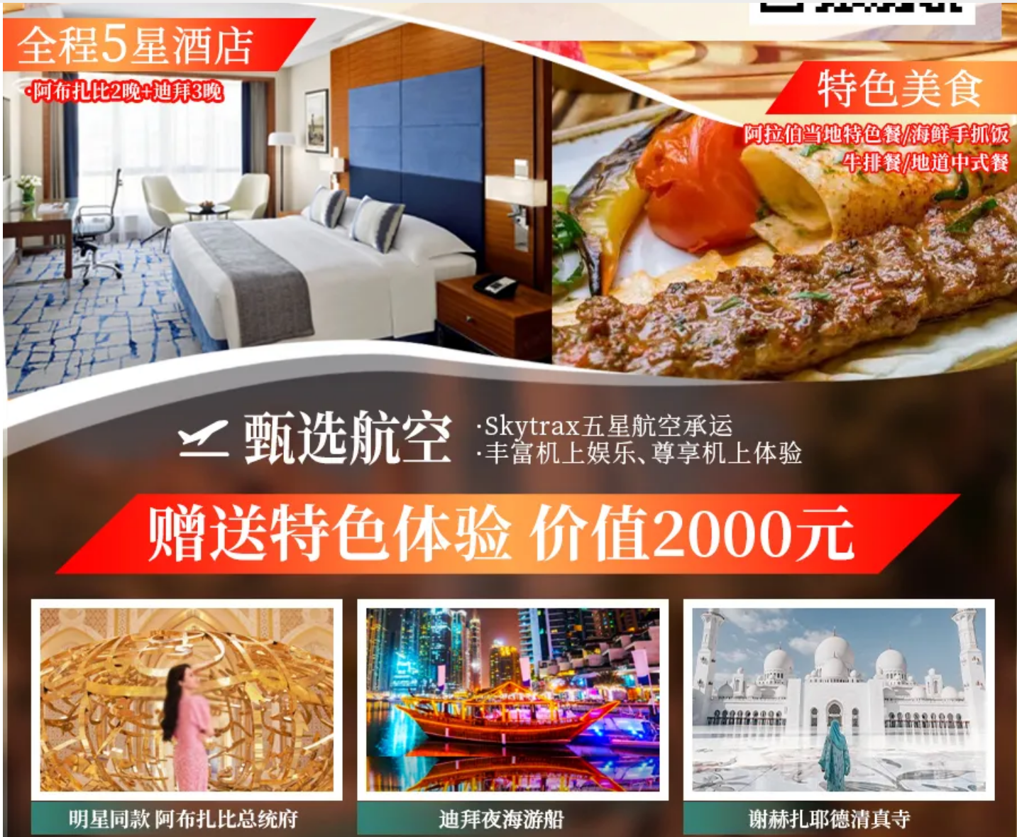 包括阿布扎比2晚五星酒店,