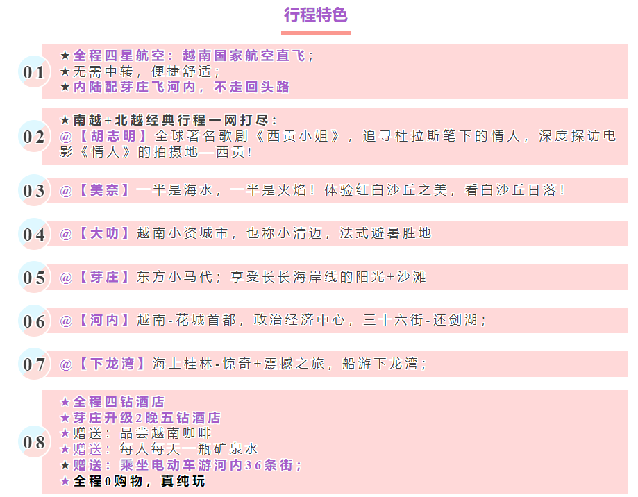 4、境外司导小费;越南是小费制国家,当地司导小费约20元/人/天,行程结束后支付给当地导游