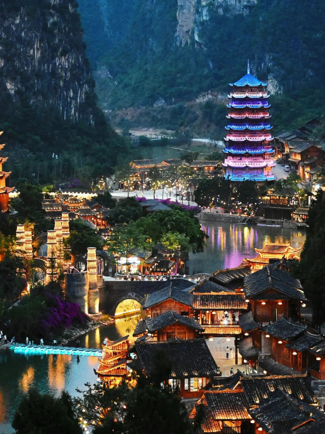 贵州夜景天花板,还能观看篝火晚会、打铁花等特色表演,感受浓厚的民族氛围。