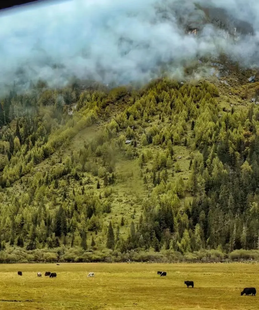 雪山、草原、湖泊、藏寨、落日、牛羊像是哈尔的移动城堡浪漫又治愈