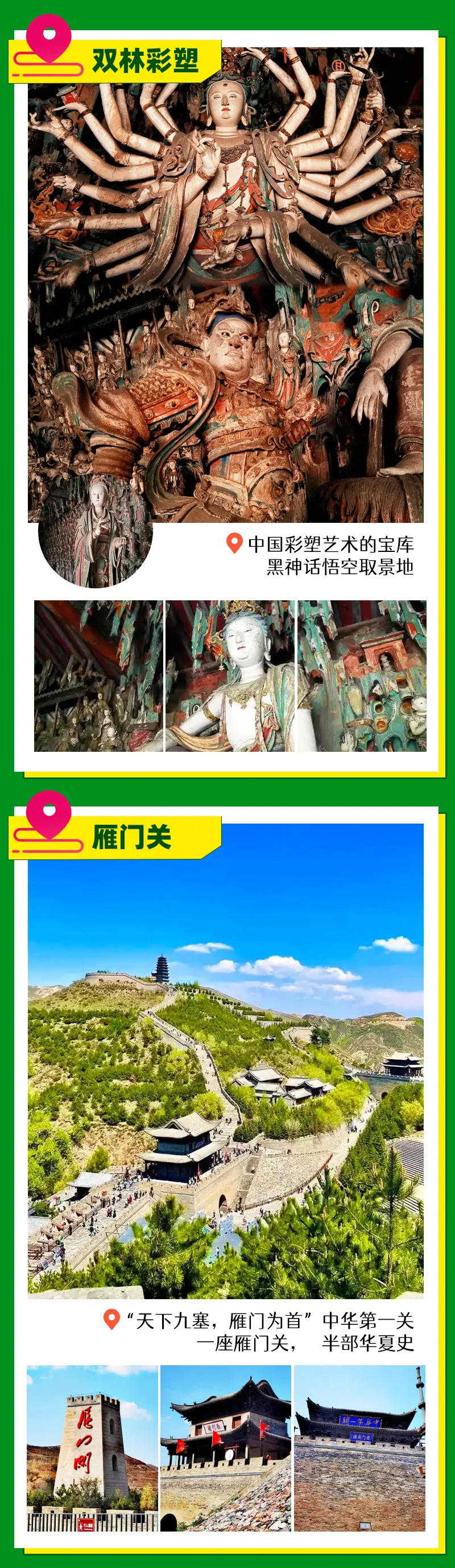 【用餐】全程酒店含3早餐、5正餐(其中三正特色餐:五台山素斋、塞北家宴、平遥八锦碟)不用不退;