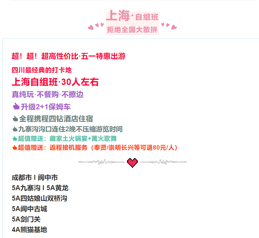 九寨沟、黄龙、剑门关、四姑娘山双桥沟、熊猫基地 景区首道门票