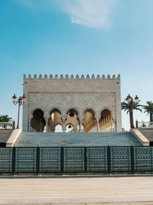 穆罕默德五世为前国王哈桑二世的父亲,逝世于1961年,其墓1962年开始修建,1971年竣工,墓正面是拉巴特的象征--哈桑塔及哈桑大清真寺遗址。