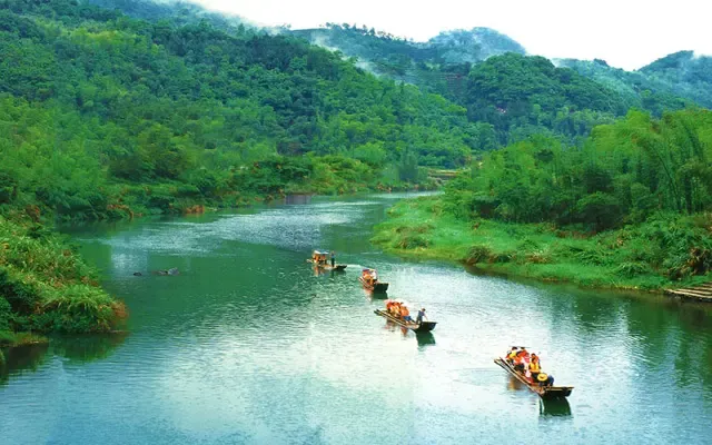 期间可自理乘坐竹筏游览“中国养生运动第一溪”——九鲤溪(竹筏费用 85 元自理,自愿参加,不强制),九鲤溪漂流全程 6.8 公里,耗时 1 个小时,途经九曲十三滩,滩曲之间动静对比鲜明—险处浪花扑面,惊心动魄;静处波澜不惊,悠然自得。顺流而下,动静皆品,回味隽永,九鲤溪又称“九鲤溪瀑”,是太姥山风景区之一,距离太姥山不到半个小时的车程。九鲤溪以山清水秀、风光秀美而著称,诗称“门拥千峰翠,溪无一点尘”。蜿蜒 25 公里的九鲤溪,如翠绿色的腰带,低徊缠绕,沿岸青山重回,绿树葱茏。以此天然美景为依托,近年来,景区开发方着力打造了一个融合田园风光与运动为一体的“中国养生运动第一溪”。