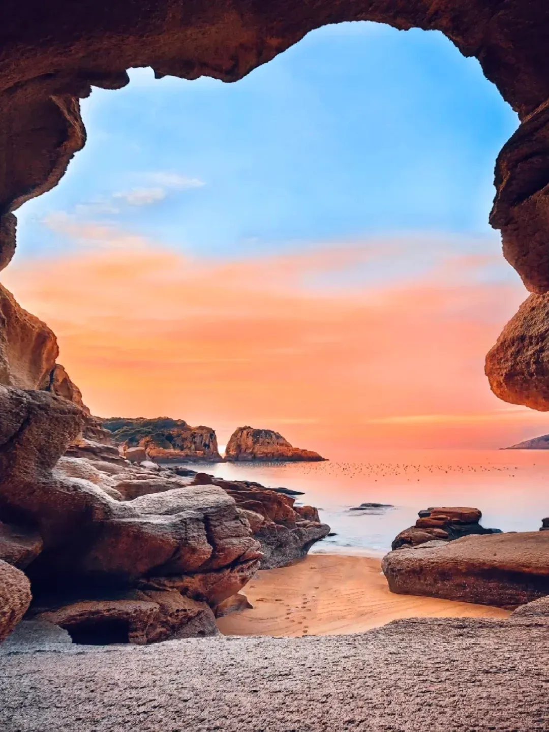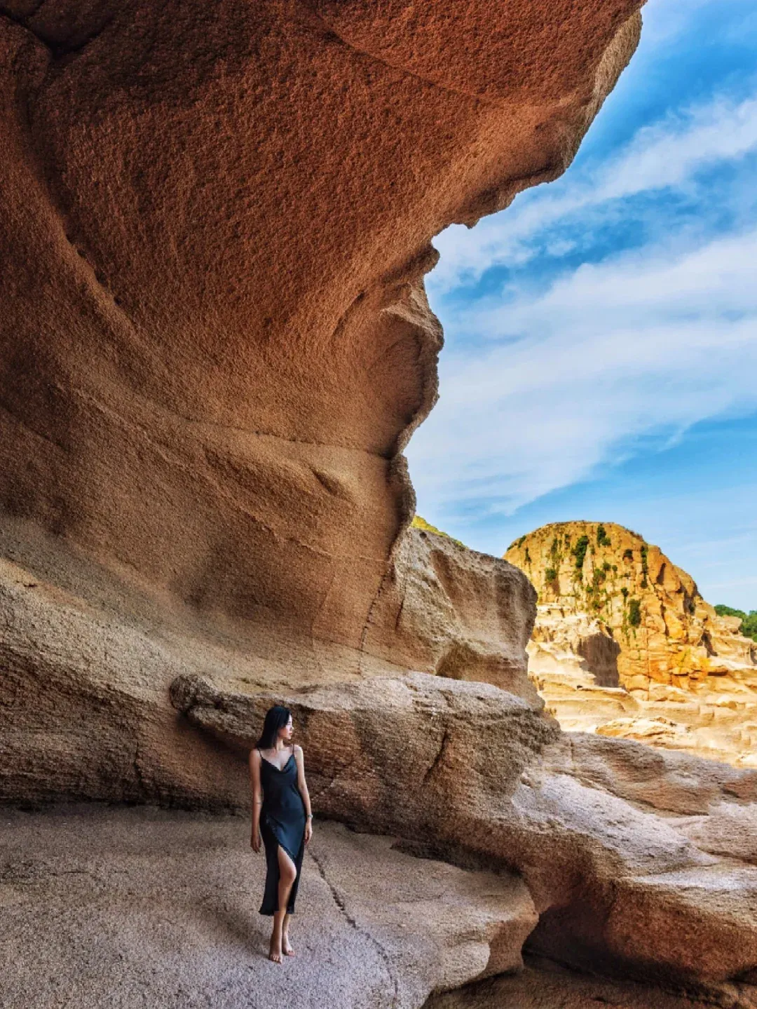 -后游览【下尾岛】(无门票,游览约 1 小时),又名夏威屿,位于福建省霞浦县长春镇半岛的东南末端,直面东海,面积不到 0.1 平方公里。尽管面积小的可怜,近年来,下尾岛却有点“火”,这里的沙滩和岸礁吸引着游客纷至沓来。大自然的鬼斧神工,造就了千姿百态的奇礁怪石。经过长期的海水侵蚀,山石之间的景色独具一格。这里随手一拍都是网红大片,尤其是那个网红山洞的视角,从山洞里往外看,天外有天。
