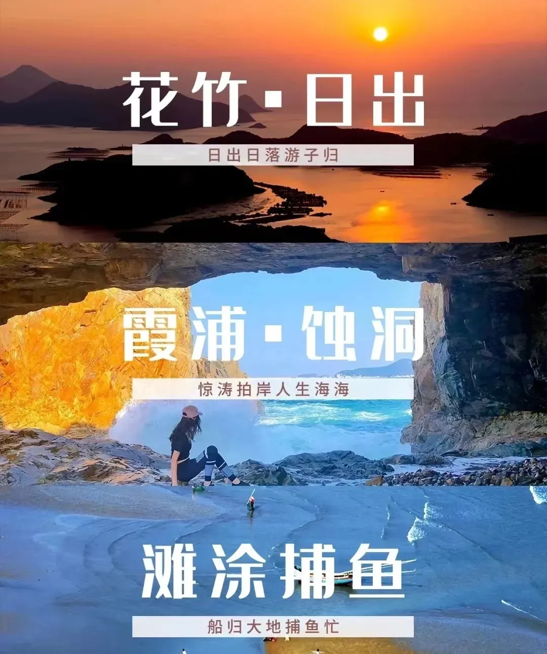 温馨提示:1、嵛山岛往返船票100元、岛上小交通40元,游客自理,若不自理,则放弃该景区游览,于酒店自由活动,若遇停航,则取消嵛山岛参观,或调换游览顺序★霞浦东壁是最佳日落观赏滩涂区域,能否欣赏岛日落,要视天气而定