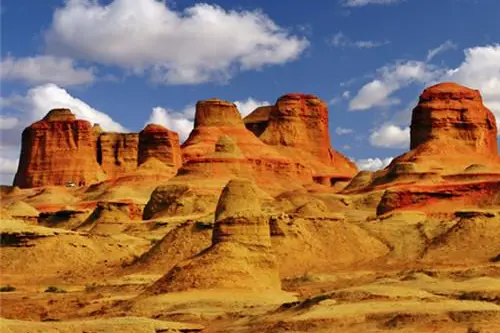 奥依塔克红山称“南疆火焰山”。奥依塔克红山那隆起的红色山崖身披裂纹,犹如座座巨大的雕塑,在蓝天白云的映衬下,大气磅礴格外漂亮。