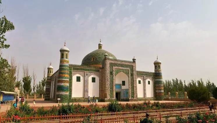 早餐后,前往最著名的穆斯林家族陵墓【香妃园(名阿帕霍加麻扎)】(含表演,约2小时)这是一座典型的伊斯兰古建筑群,也是伊斯兰教圣裔的陵墓,占地2公顷。据说墓内葬有同一家族的五代72人(实际只见大小58个墓穴)。第一代是伊斯兰著名传教士玉素甫霍加。他死后,其长子阿帕克霍加继承了父亲的传教事业,成了明末清初喀什伊斯兰教“依禅派”著名大师,并一度夺得了叶尔羌王朝的政权。他死于1693年,亦葬于此,由于其名望超过了他的父亲,所以后来人们便把这座陵墓称为“阿帕克霍加墓”。 传说,埋葬在这里的霍加后裔中,有一个叫伊帕尔汗的女子,是乾隆皇帝的爱妃,由于她身上有一股常有的沙枣花香,人们便称她为“香妃”。香妃死后由其嫂苏德香将其尸体护送回喀什,并葬于阿帕霍加墓内,因而人们又将这座陵墓称做香妃墓”。游览结束后,入住酒店休息。
