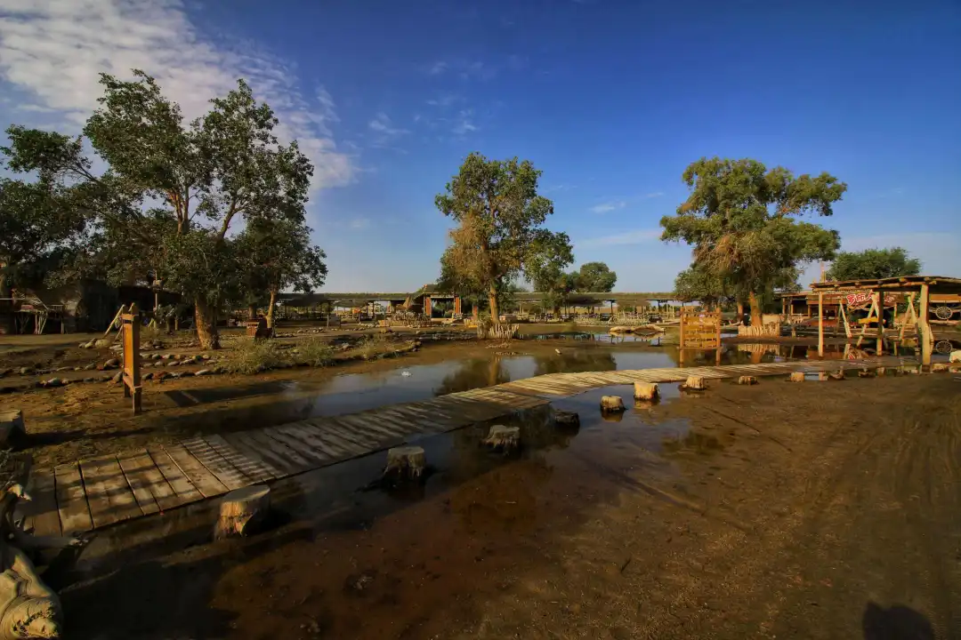 备注:由于罗布人村寨5月-8月临时关闭,如罗布人村寨闭园则更改为罗布淖尔国家湿地公园。新疆尉犁罗布淖尔国家湿地公园地处塔里木盆地北缘,塔里木河中下游流域,属于典型的干旱荒漠性湿地,包括河流湿地、沼泽湿地、沙丘间湖泊、河流洪泛台地、河滩等湿地类型。湿地植物10余种。珍稀濒危植物6种。绿化覆盖率高、植物种类较多、具有较好的生态及观赏价值。不仅是生态保护的典范,更是自然与人文交织的瑰宝,承载这荒漠重生的希望与丝路文明的记忆。