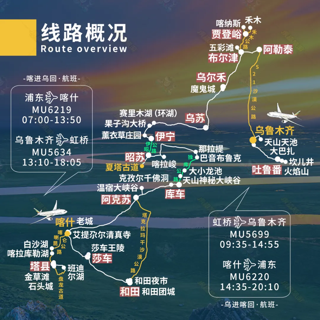 【交通】上海-乌鲁木齐,喀什-上海往返机票含税含行李(手提7KG+托运20KG) ;切位航班一经确认不得退改签,如有变化全损(不可更改姓名或提供名单错误),请报名时仔细核对客人信息;