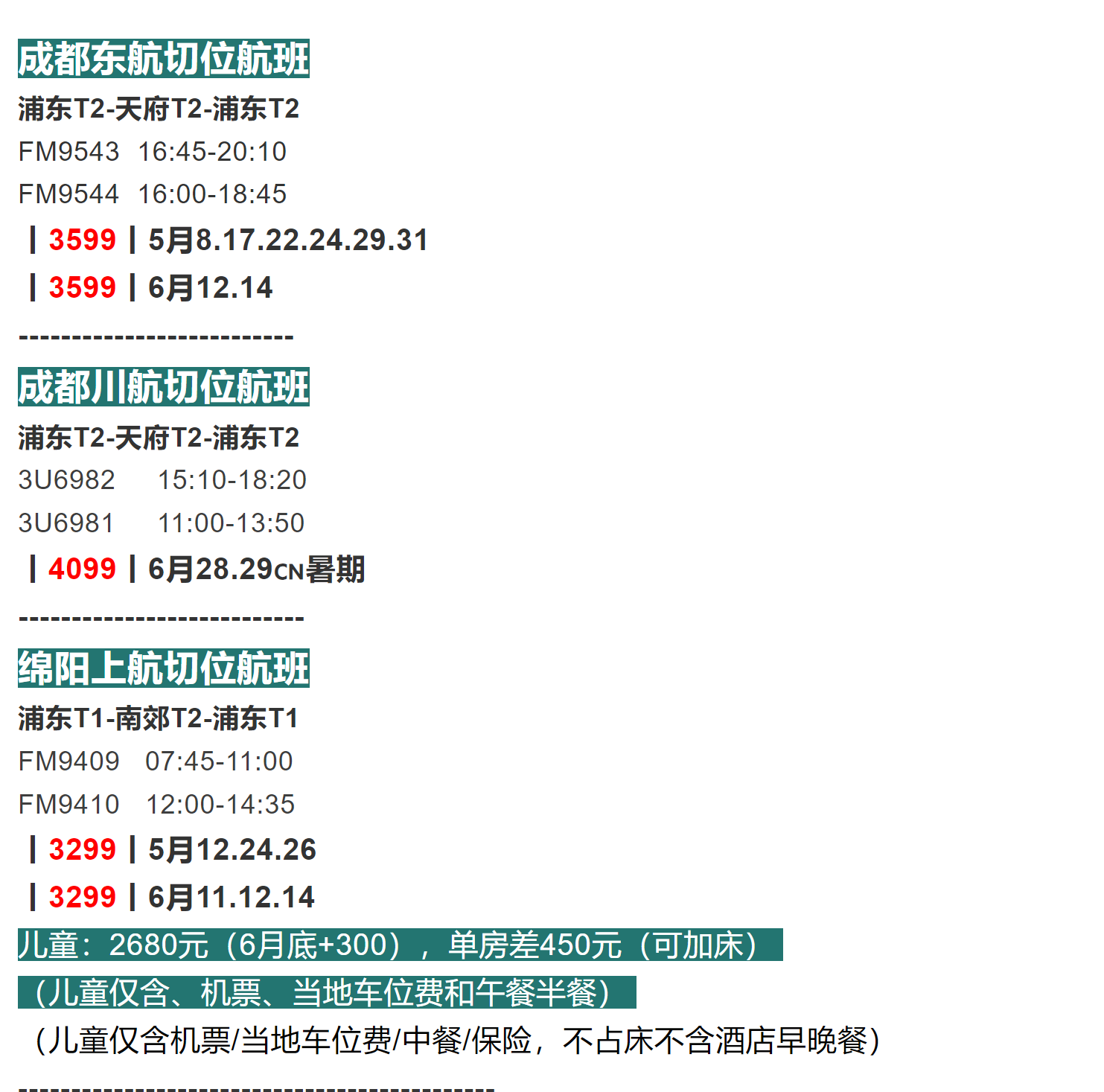 8、儿童说明:2-12岁(不含)儿童仅含往返机票、当地车位、半价中餐;其余均自理。(儿童不占床不含酒店早晚餐、门票、赠送项目;产生现付)