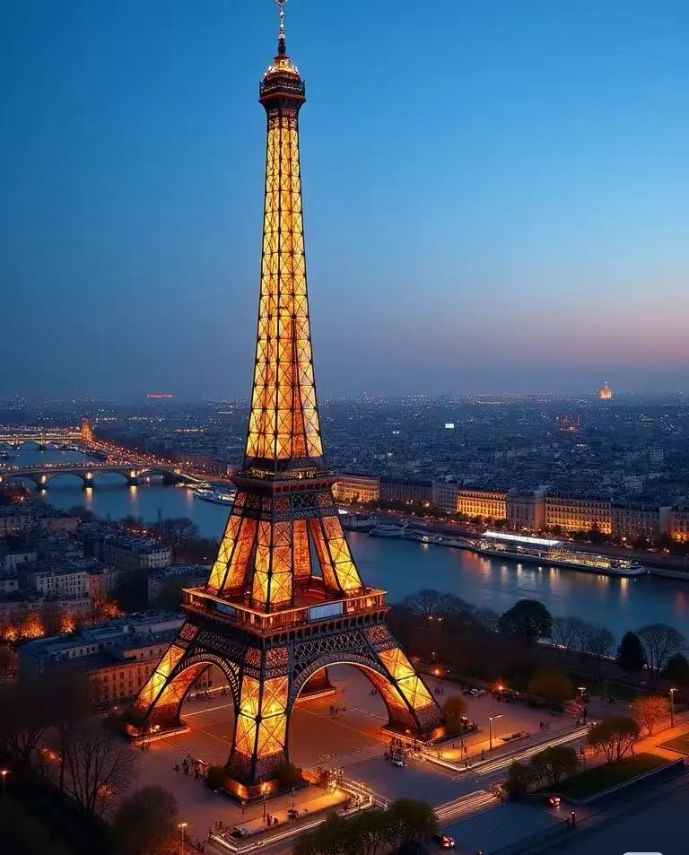 【埃菲尔铁塔】(远观)埃菲尔铁塔是巴黎地标之一,如果说巴黎圣母院是古代巴黎的象征,那么埃菲尔铁塔就是现代巴黎的标志。这座铁塔起初是为了迎接世界博览会及纪念法国大革命100周年而建,是法国的文化象征