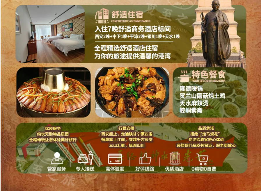 3、西安、宁夏均有许多特色名小吃,不含餐的情况下您可自行品尝当地美食。