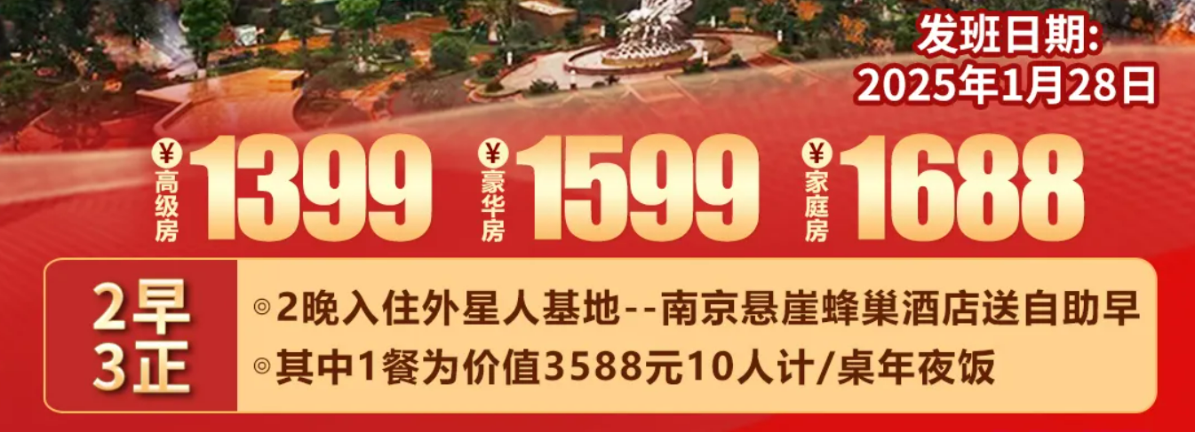 春节班期1.2米以下儿童须购买儿童价499元/人(只含车位+服务费+3正餐)