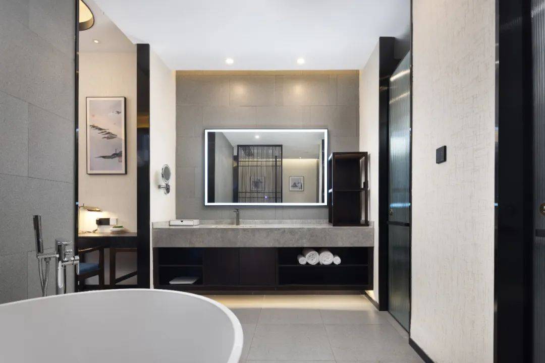 新中式的大堂,搭配中式的庭院,古朴雅致的格调,仿佛置身于江南某位大户人家的府邸之中。
