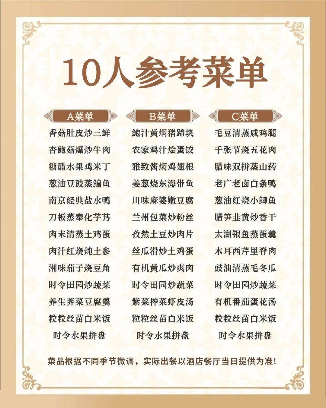 注:以上菜单根据人数增减调整