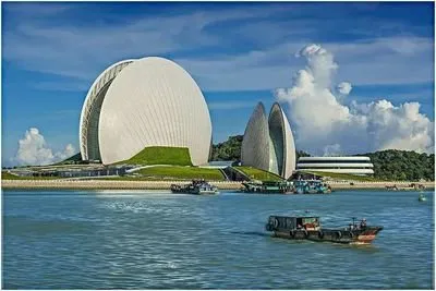 外观【日月贝】珠海大剧院 (Zhuhai Grand Theater) 位于广东 省珠海市情侣路野狸岛海滨,是中国唯一建设在海岛上的歌剧院。珠海大剧院由一大一小两组“贝壳”组成,构成了 歌剧院的整体形象,因此得称“日月贝”。