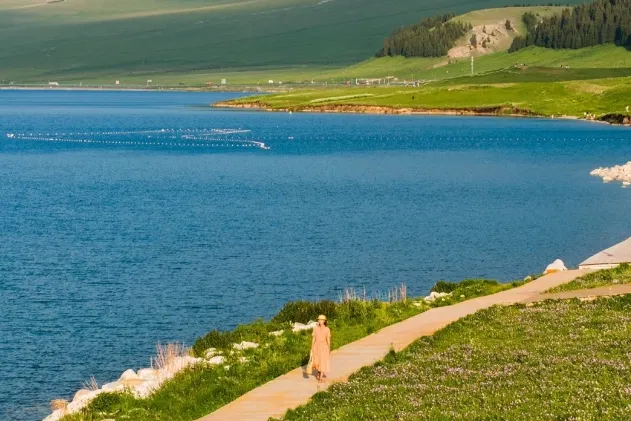 【赛里木湖】(含门票+环湖直通车)(游览时间约3小时)赛里木湖像一颗璀璨的“蓝宝石”,四周被群山环绕,天水相映;春夏季节,湖畔广阔的草地上,牧草如茵、黄花遍地、牛羊如云、牧歌悠悠、毡房点点、构成一幅充满诗情画意的古丝路画卷。当地流传着湖怪、湖心风洞等传说,给赛里木湖蒙上了一层神秘面纱...