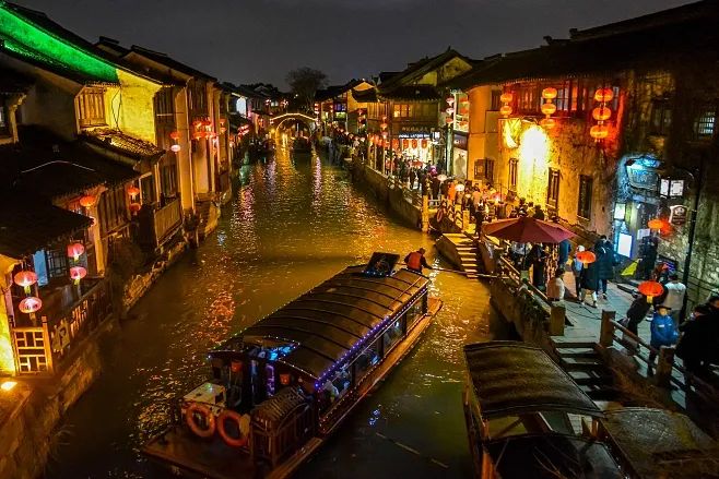 西栅的夜景是许多人钟情这里的理由,晚上古镇里的桥梁和房屋都亮起灯光,乘着小船驶在倒影里,感觉非常好,拍出的照片也别有一番风情。