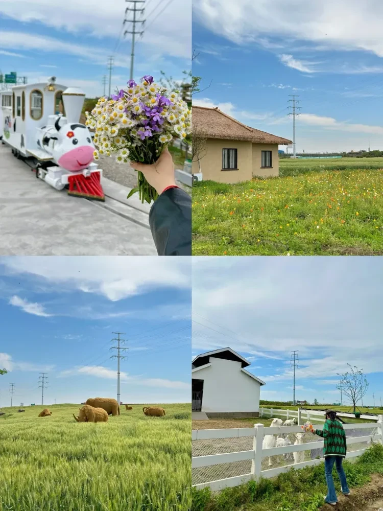•四季花海:不同季节有不同主题花海,比如郁金香、绣球花、金鱼草、月季等,随手一拍就是大片!航拍花海更是震撼,色彩斑斓,美不胜收。 •农旅体验:这里有农艺馆、生态农业示范基地,可以体验古法造纸、钓龙虾,带孩子来还能参与涂鸦长卷、在沙滩乐园玩耍。 •萌宠互动:景区内设有“花田牧场”,可以近距离喂食萌萌的小羊,超受小朋友欢迎! •休闲娱乐:除了赏花,还可以骑马、划船、在草坪上搭帐篷,或者来一场户外烧烤,超惬意~