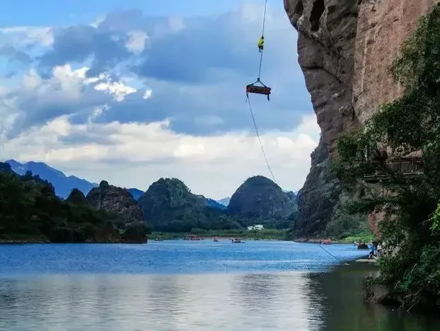 还能看上一场悬棺表演,欣赏一场跨越千年古越人丧葬仪式。看着悬棺表演者在几近垂直的崖上采药,倒顺绳子滑下来,惊险刺激的表演,绝对让你眼前一亮!