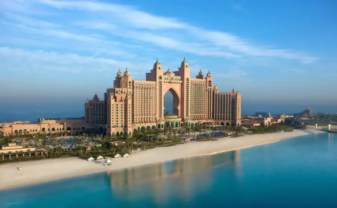 随后【亚特兰蒂斯酒店】(外观,不少于15分钟)以传说中失落的海底古城亚特兰提斯为主题打造的亚特兰蒂斯酒店,位在朱美拉棕榈岛外环中央最重要的位置。