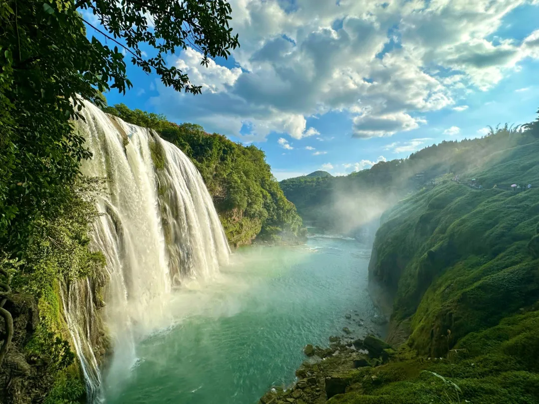 游览【天星桥景区】(游时约1小时),漫步其中,一步一景,三步一画,山、石、水、林、洞、瀑无不奇妙绝伦,四围青山如画,植被茂盛,清流密布, 古树怪石奇异多姿,“有水皆成瀑,是石总盘根”是它真实的写照。游览【陡坡塘瀑布】(游时约30分钟),此瀑布是黄果树瀑布群中瀑顶最宽的瀑布,也是西游记拍摄地。