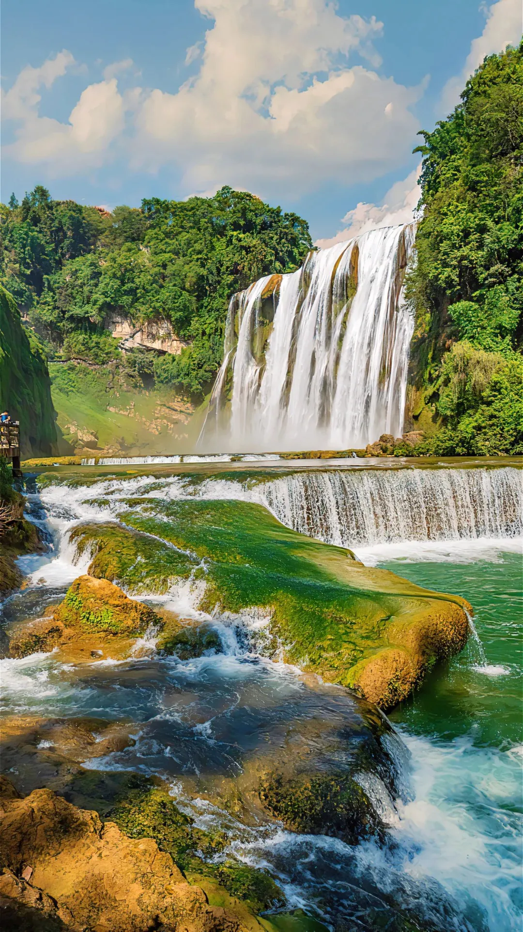 黄果树瀑布属喀斯特地貌中的侵蚀裂点型瀑布,是贵州旅游的著名景点。