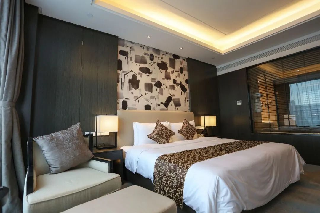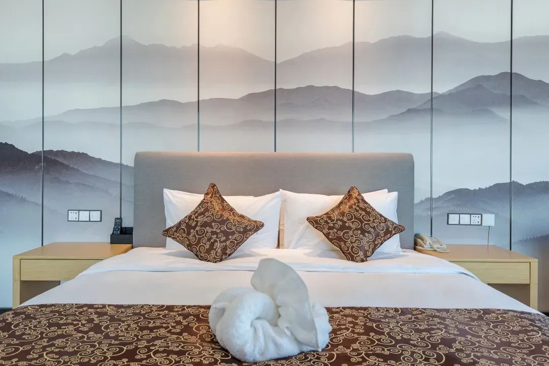酒店置于太湖山水中,静谧如幽幽憩所,树木苍郁,绿地宽阔,景观与建筑交相辉映。
