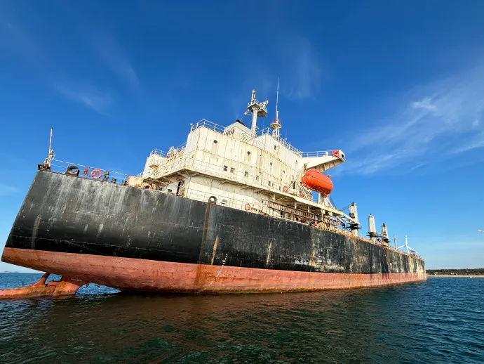 威海海边的 "钢铁巨兽" 末日大片打卡地⚓️| 在荣成醉美的海岸线上,布鲁维斯号如同一座神秘的巨轮雕塑,静静地伫立在碧海蓝天之间