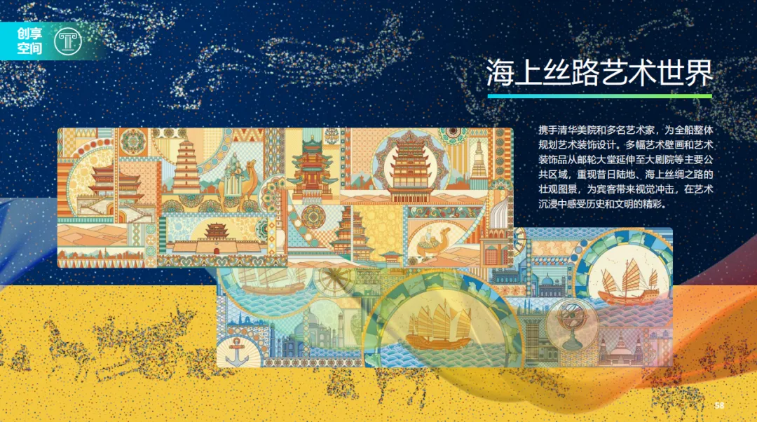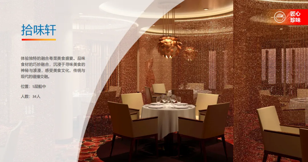 在碧蓝的海面上逃离日常的喧嚣,您可以品尝精选世界美食和中国地道珍 馐,体验美食文化的全新探索,或者徜徉在集创新演艺、时尚休闲、艺术展 陈和亲子娱乐为一体的体验空间,以五感沉浸的方式打