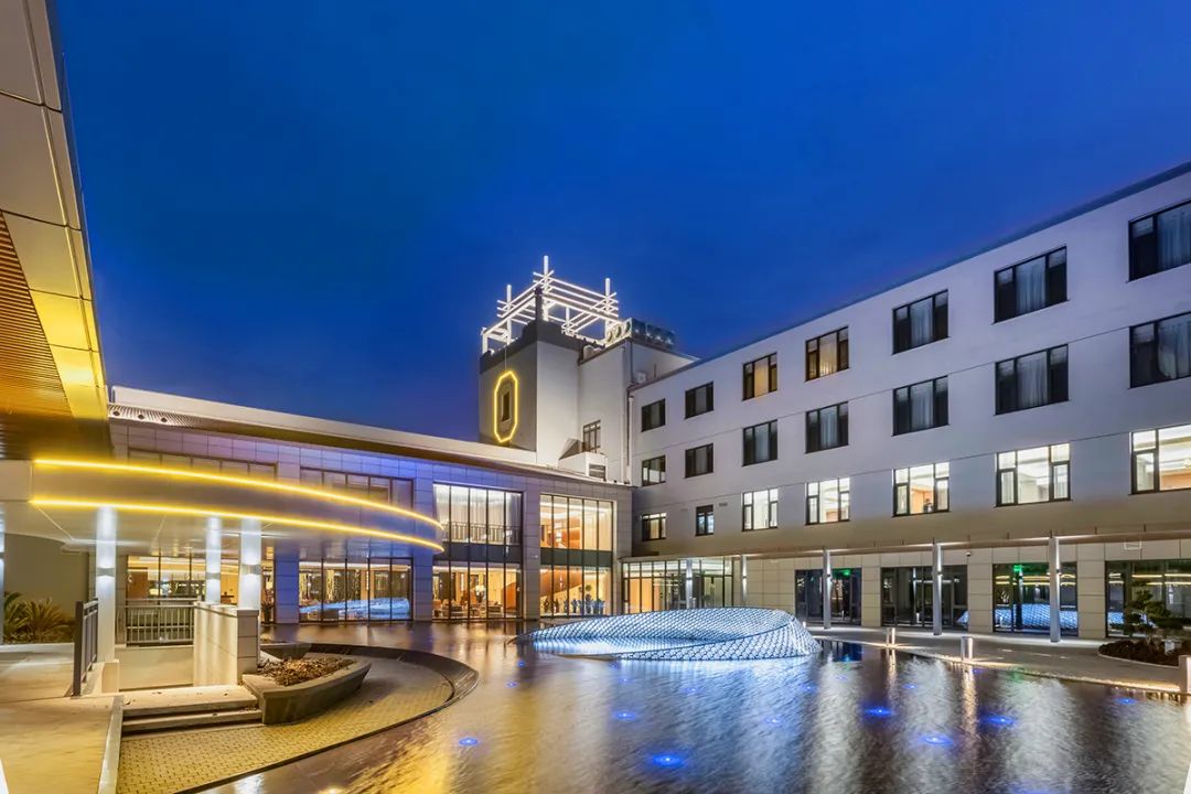 酒店占地面积1.9万平方米,将花园庭院式的客房、餐厅、会议、健身等设施与园林设计融为一体。